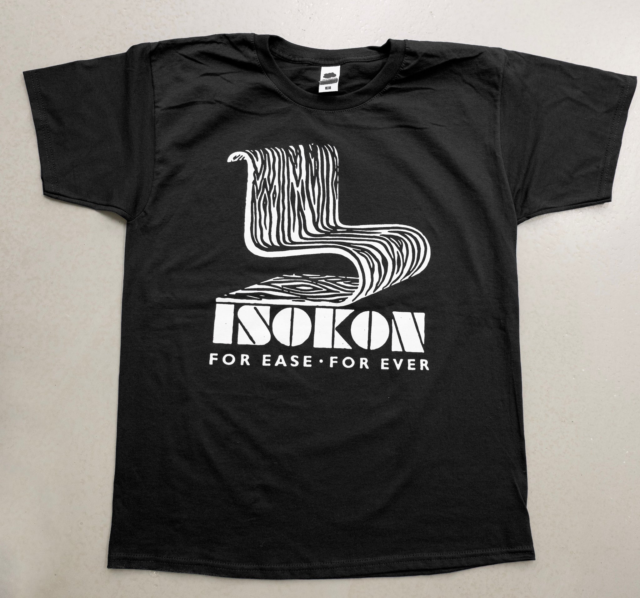 Made in Finland exclusively for the Isokon Gallery, this is a high quality, black, 100% cotton t-shirt, featuring the original 1936 Isokon furniture logo designed by László Moholy-Nagy.